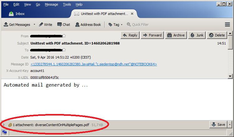 Es gilt zwei Probleme zu lösen. Einerseits muss innerhalb des Tests ein Mail verschickt werden und unmittelbar wieder ausgewertet werden. Und andererseits ist der PDF-Anhang des erhaltenen Mails zu analysieren.