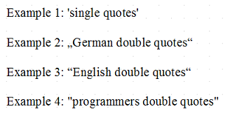 Wichtiger Hinweis: Der Begriff „Anführungszeichen“ wird in Texten unterschiedlich umgesetzt, wie das folgende Bild zeigt: