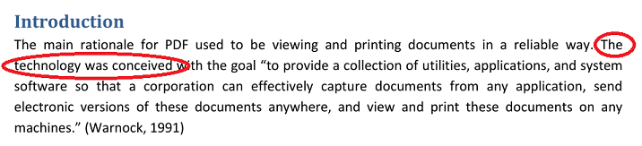 Zeilenumbrüche im Text werden beim Vergleich ignoriert, sowohl Zeilenumbrüche im Text der PDF-Seite, als auch die im Suchstring. Im folgenden Beispiel stammt der zu suchende Text aus dem Dokument „Digital Signatures for PDF Documents“ von Bruno Lowagie (iText Software). Der erste Absatz sieht optisch so aus: