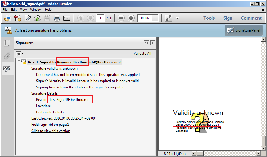 Signatures contain a huge amount of data. Some of them reachable by PDFUnit tests. Section 3.28: “Signed PDF” describes tests with signatures.
