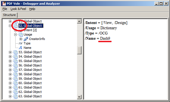 | Layer Names in Adobe Reader® | Layer Objects in PDFVole |